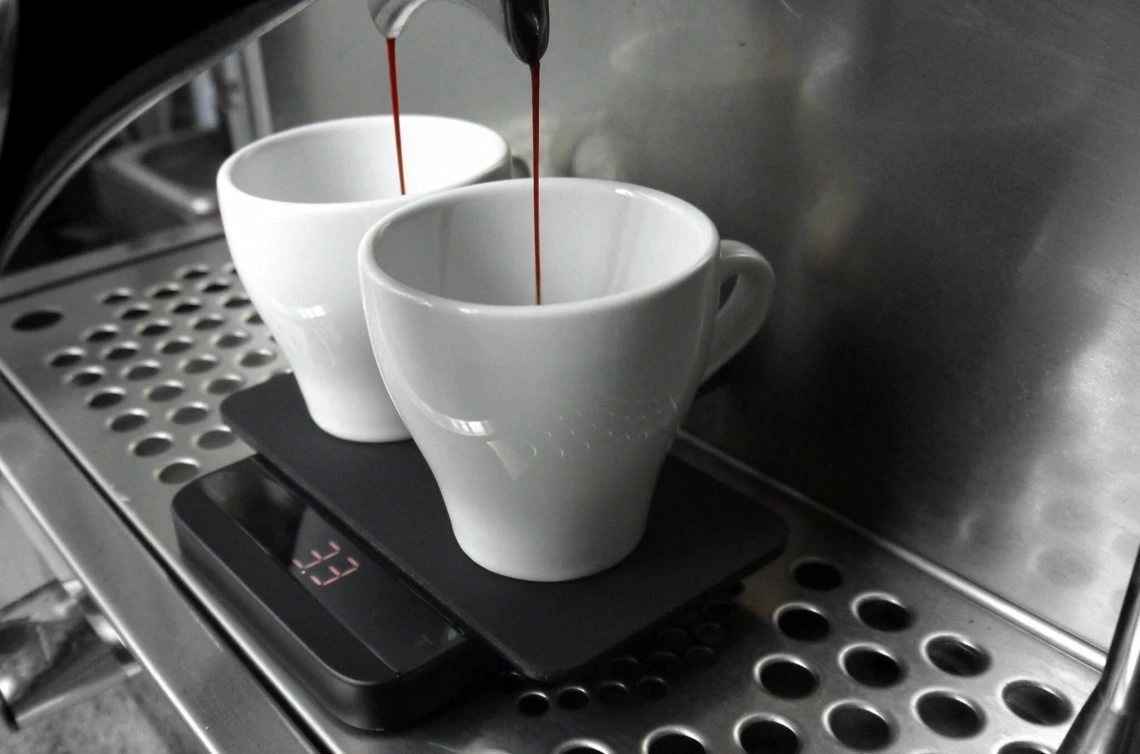 – Tailored to fit a standard commercial portafilter or two 180mL cappuccino cups on the acaia lunar scale.