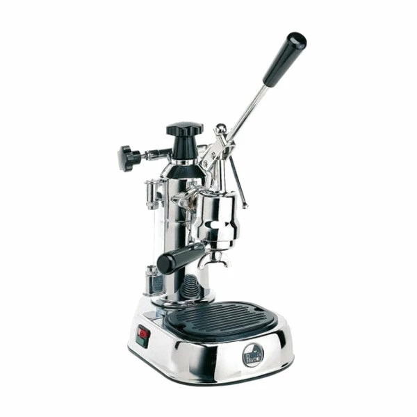 The classic lever machine continuously evolving since its introduction. This machine is largely constructed of cast brass and is built to last. The large boiler ensures that limescale deposits have minimal effect, meaning minimum maintenance is needed. This model enables to deliver 8 cups of espresso continuously.