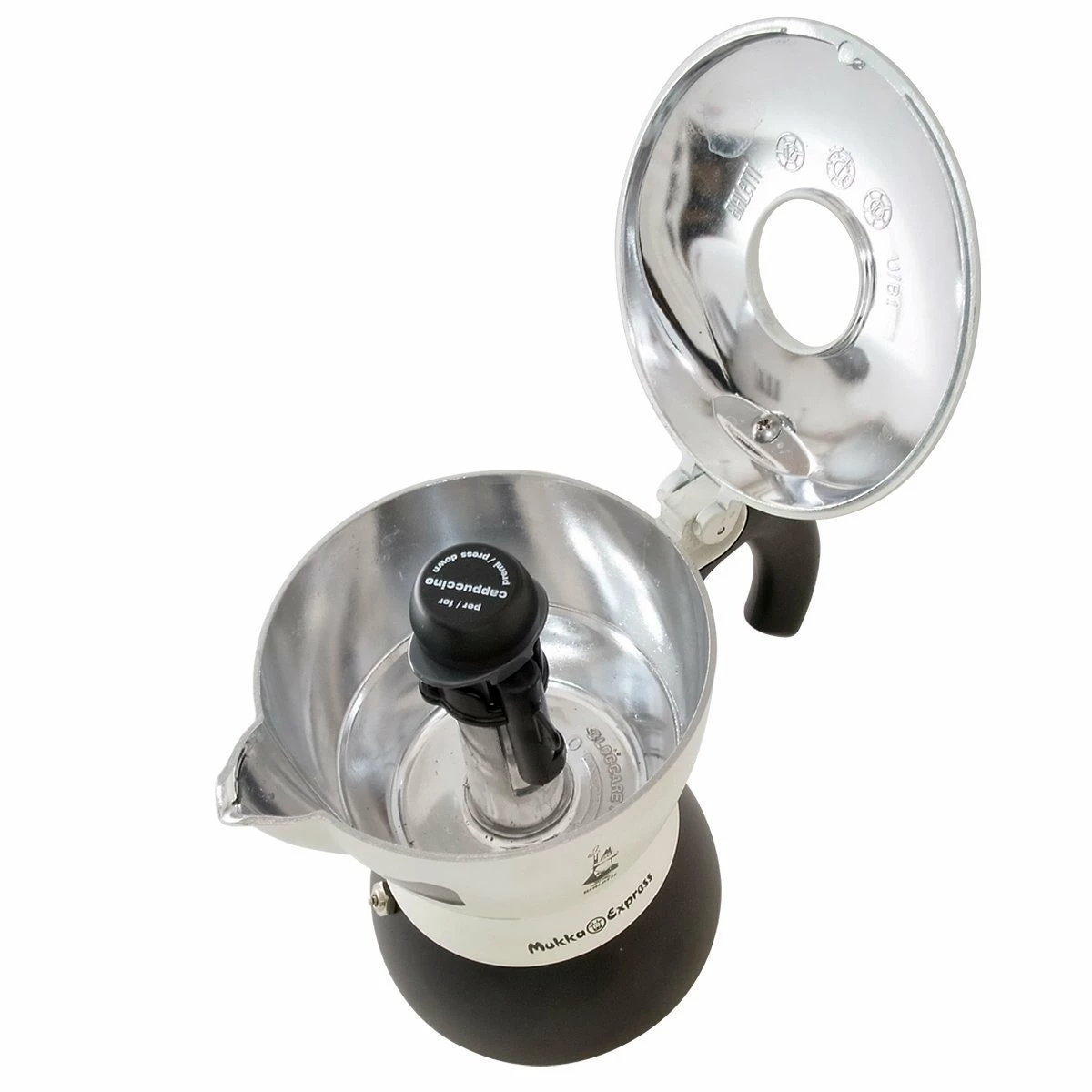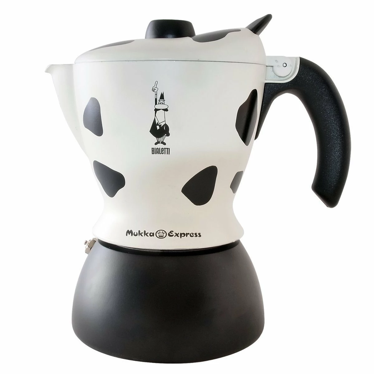 All-In-One Cappuccino Maker – The Bialetti Mukka Cow Express is the only all-in-one stovetop cappuccino maker, producing both espresso and steamed milk.