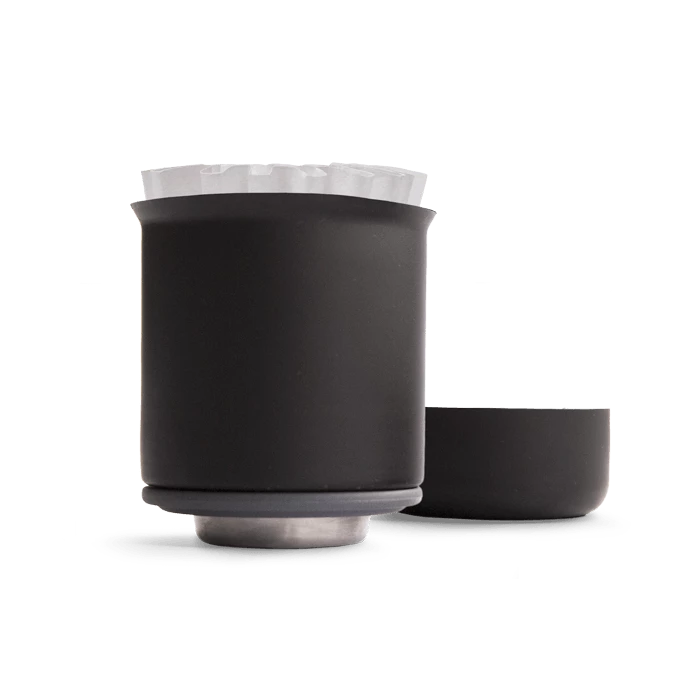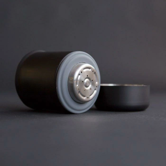– Vacuum insulated for ultimate heat retention during your brew. Matte Black Stainless steel body, silicone gasket.