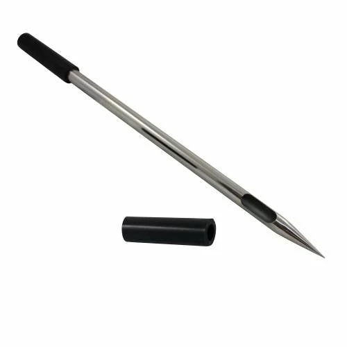 Sampler for checking quality of green coffee beans. Made of stainless steel with silicon covered handle.